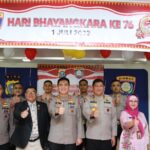 “Pada kesempatan ini saya sampaikan selamat kepada personel yang mendapat kenaikan pangkat. Tunjukkan bahwa di momentum Hari Bhayangkara ini, kita bisa berbuat lebih. Berkontribusi untuk masyarakat bangsa dan negara lewat institusi kepolisian,” tandasnya.