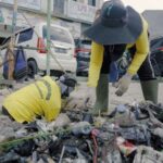 Petugas dari BKSDA dibantu warga setempat memasang perangkap