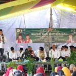 Bupati Banyuasin saat menyampaikan kata sambutan kegiatan safari Ramadhan merupakan kegiatan tahunan yg di lakukan pemerintah kabupaten Banyuasin, ke masjid-masjid di sejumlah desa yang ada di kecamatan kabupaten Banyuasin. Sesuai jadwal safari Ramadhan di masjid Nurul iman desa Tirta harja, Bupati Banyuasin dan wakil Bupati Banyuasin beserta rombongan melakukan buka puasa bersama dengan berjamaah di mesjid kemudian melanjutkan sholat Maghrib, sholat isya dan sholat tarawih dan witir bersama,