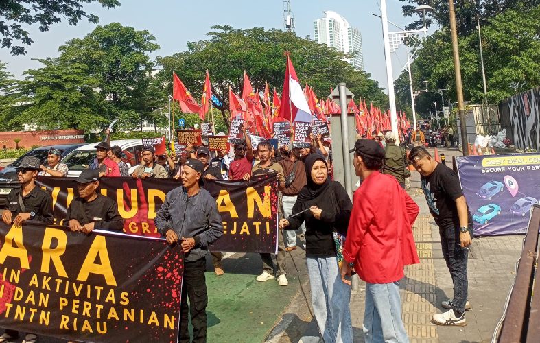 Jakarta, Garda45.com – Ratusan masyarakat TNTN bersama Liga Mahasiswa Nasional untuk Demokrasi (LMND) lakukan aksi di Kementerian Kehutanan Republik Indonesia pada hari Senin 21 Juli 2025 silam, aksi ini merupakan respons terhadap upaya relokasi yang dilakukan oleh pemerintah terhadap pemulihan TNTN.