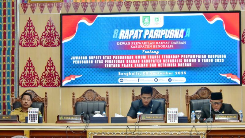 Bengkalis, Garda45.com – Bupati Bengkalis melalui Staf Ahli Ed Efendi menyampaikan jawaban atas pandangan umum fraksi-fraksi DPRD terkait dua Rancangan Peraturan Daerah (Ranperda) yang diusulkan dalam Rapat Paripurna DPRD Bengkalis, Selasa (09/09/2025).
