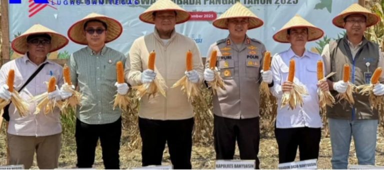 Banyuasin, Garda45.com – Tanjung Lago Dalam rangka gugus tugas Polri mendukung ketahanan pangan di Kabupaten Banyuasin, Mewakili Bupati Banyuasin, Sekretaris Daerah Banyuasin, Ir. Erwin Ibrahim, ST., MT., MM., MBA., IPU., ASEAN.Eng bersama Kapolres Banyuasin, AKBP. Ruri Praswoto, SH., S.IK., M.IK melakukan Panen Jagung Serentak Kuartal III di Desa Sukatani, Kecamatan Tanjung Lago, Sabtu (27/09/2025).