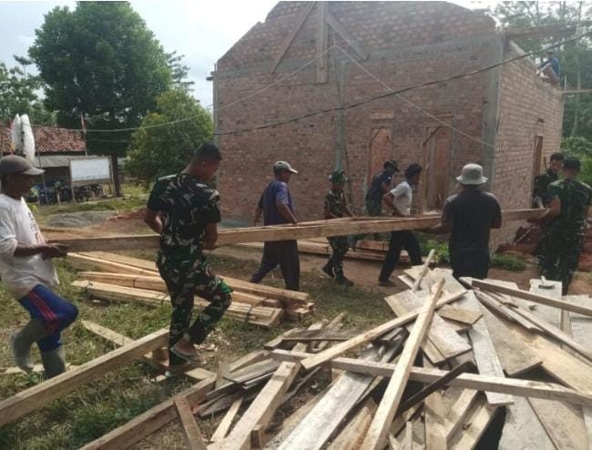 Way Kanan, Garda45.com – Program TNI Manunggal Membangun Desa (TMMD) ke-126 Kodim 0427/Way Kanan terus menunjukkan hasil nyata di Kampung Sriwijaya, Kecamatan Umpu Semenguk, Kabupaten Way Kanan. Hingga Rabu (22/10/2025), pembangunan Rumah Tidak Layak Huni (RTLH) milik Bapak Parnen telah mencapai progres sekitar 60 persen, dengan fokus pengerjaan pada tahap pemasangan kayu untuk rangka atap (naik kap).