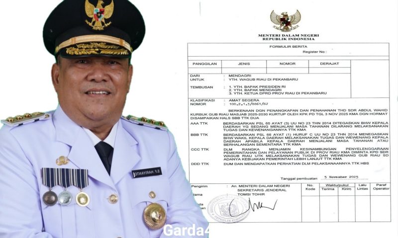 Langkah cepat itu datang dalam bentuk surat resmi Kementerian Dalam Negeri (Kemendagri) bernomor 100.2.1.3/8861/SJ, yang menunjuk Wakil Gubernur Riau SF Hariyanto untuk menjalankan tugas dan wewenang Gubernur Riau.