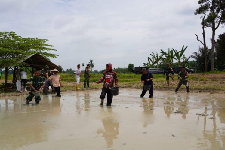 Kegiatan tabur benih ini melibatkan kelompok tani binaan Puslatpur Kodiklatad bersama tim pendamping dari Agrinas yang secara aktif memberikan pelatihan dan bimbingan dalam pengelolaan lahan serta peningkatan produktivitas pertanian.