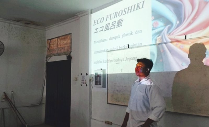 Dalam kegiatan tersebut, mahasiswa PLP UNRI memperkenalkan konsep Furoshiki, yaitu teknik membungkus barang dengan kain yang berasal dari budaya Jepang. Melalui pendekatan Eco Furoshiki, para mahasiswa mengajak siswa untuk mengganti penggunaan plastik sekali pakai dengan kain multifungsi yang dapat digunakan berulang kali.