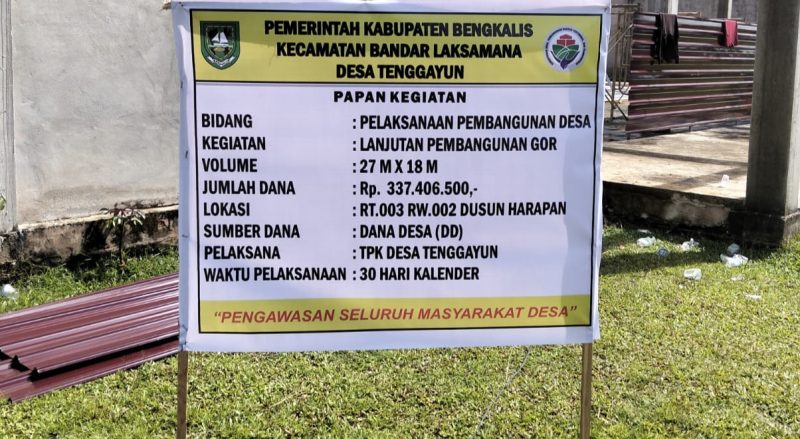 Kabupaten Bengkalis |Garda45.com – Pemerintah Desa Tenggayun giat melanjutkan Pembangunan Gelanggang Olahraga (GOR) yang berada di RT. 003, RW. 002, Dusun Harapan, Kecamatan Bandar Laksamana, Kabupaten Bengkalis.