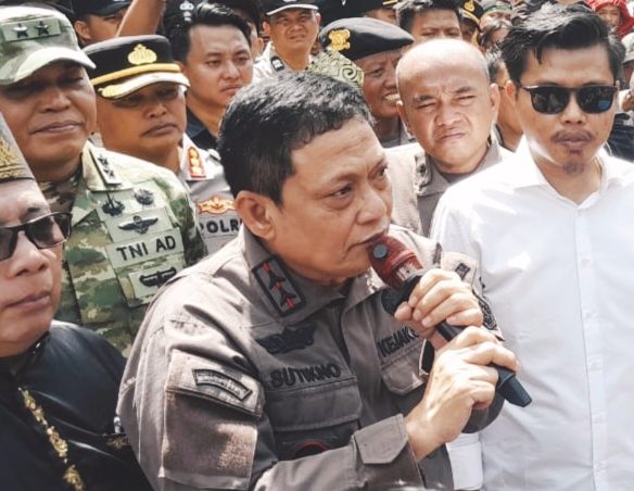 Kepala Kejaksaan Tinggi (Kajati) Riau, Sutikno, saat menjumpai massa aksi. (G45/KZ).