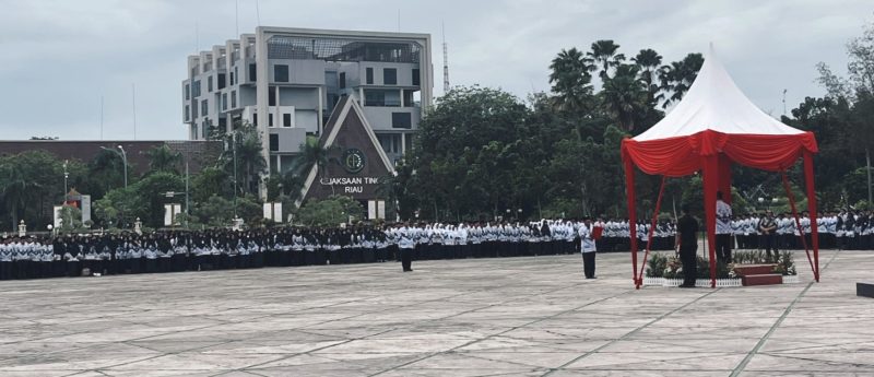 PEKANBARU | Garda45.com Peringatan Hari Guru Nasional di Provinsi Riau berlangsung khidmat di halaman Kantor Gubernur Riau, Jalan Jenderal Sudirman, Selasa (25/11/2025). Pelaksana Tugas Gubernur Riau, SF Hariyanto, memimpin langsung jalannya upacara.