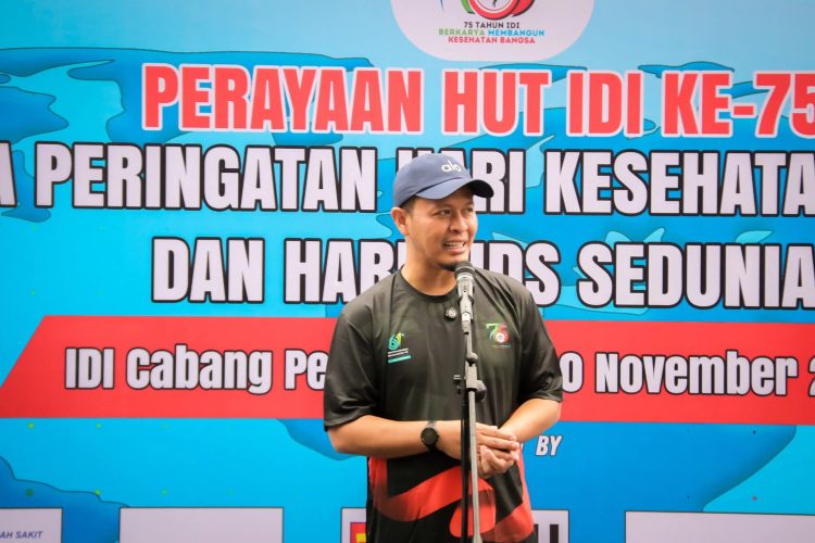 PEKANBARU | Garda45.com Wali Kota Pekanbaru, Agung Nugroho, memberikan apresiasi kepada Ikatan Dokter Indonesia (IDI) dan seluruh tenaga medis yang telah berkontribusi menjaga kesehatan masyarakat. Dukungan tersebut ia sampaikan saat menghadiri peringatan HUT IDI Ke-75 yang dirangkaikan dengan Hari Kesehatan Nasional (HKN) di Arena Car Free Day (CFD) Pekanbaru, Minggu (30/11/2025).