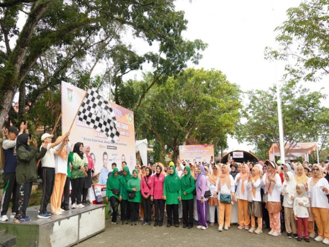 Sekretaris Daerah Kampar Hambali, SE, MBA, MH turut hadir memberikan dukungan langsung kepada peserta. Ia tampak bergabung bersama warga mengikuti jalan santai yang dilepas oleh Ketua DWP Kabupaten Kampar, Ricana Djayanti Hambali. Rute yang ditempuh mulai dan berakhir di Lapangan Pelajar dengan jarak sekitar 7–8 kilometer.