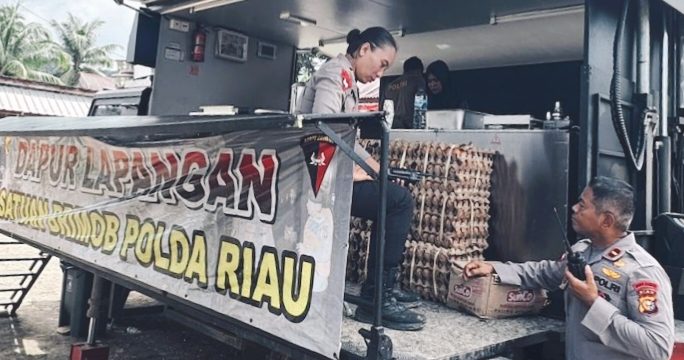 Akses pangan menjadi kebutuhan paling mendesak sejak ribuan warga kehilangan tempat titinggal. Dua dapur lapangan dioperasikan, masing-masing menghasilkan 1.500 porsi makanan setiap hari untuk pengungsi.