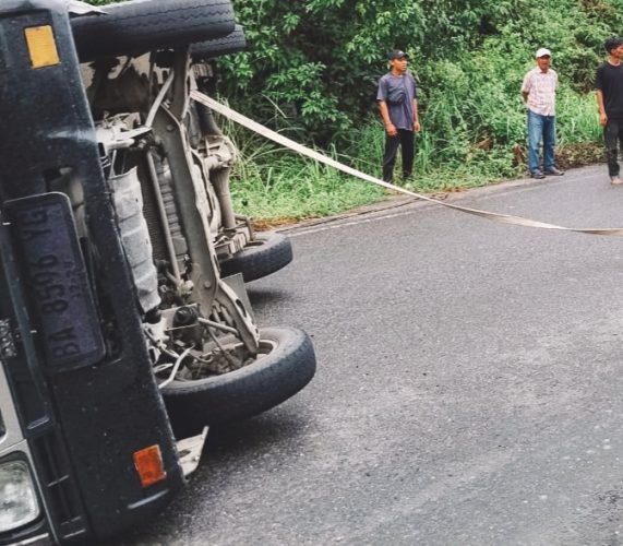 Pengemudi berinisial DK (32), warga Solok Selatan, berhasil selamat tanpa cedera. Kerugian material ditaksir sekitar Rp500 ribu. Muatan durian sebagian berserakan di badan jalan usai kendaraan terguling.