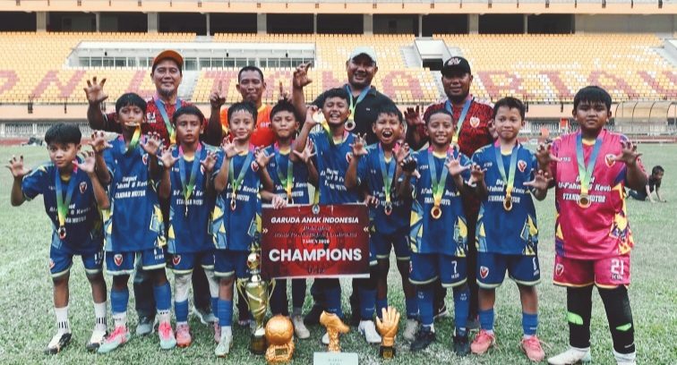Tim KU 12 sukses meraih gelar juara Turnamen Garuda Anak Indonesia Zona Riau sekaligus memastikan tiket ke seri nasional. (Foto : G45/Afdal).