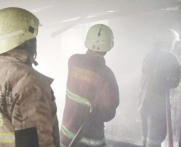 Petugas pemadam berjibaku melakukan pemadaman dan pendinginan. Proses penanganan berlangsung sekitar dua jam hingga api berhasil dikendalikan sepenuhnya.