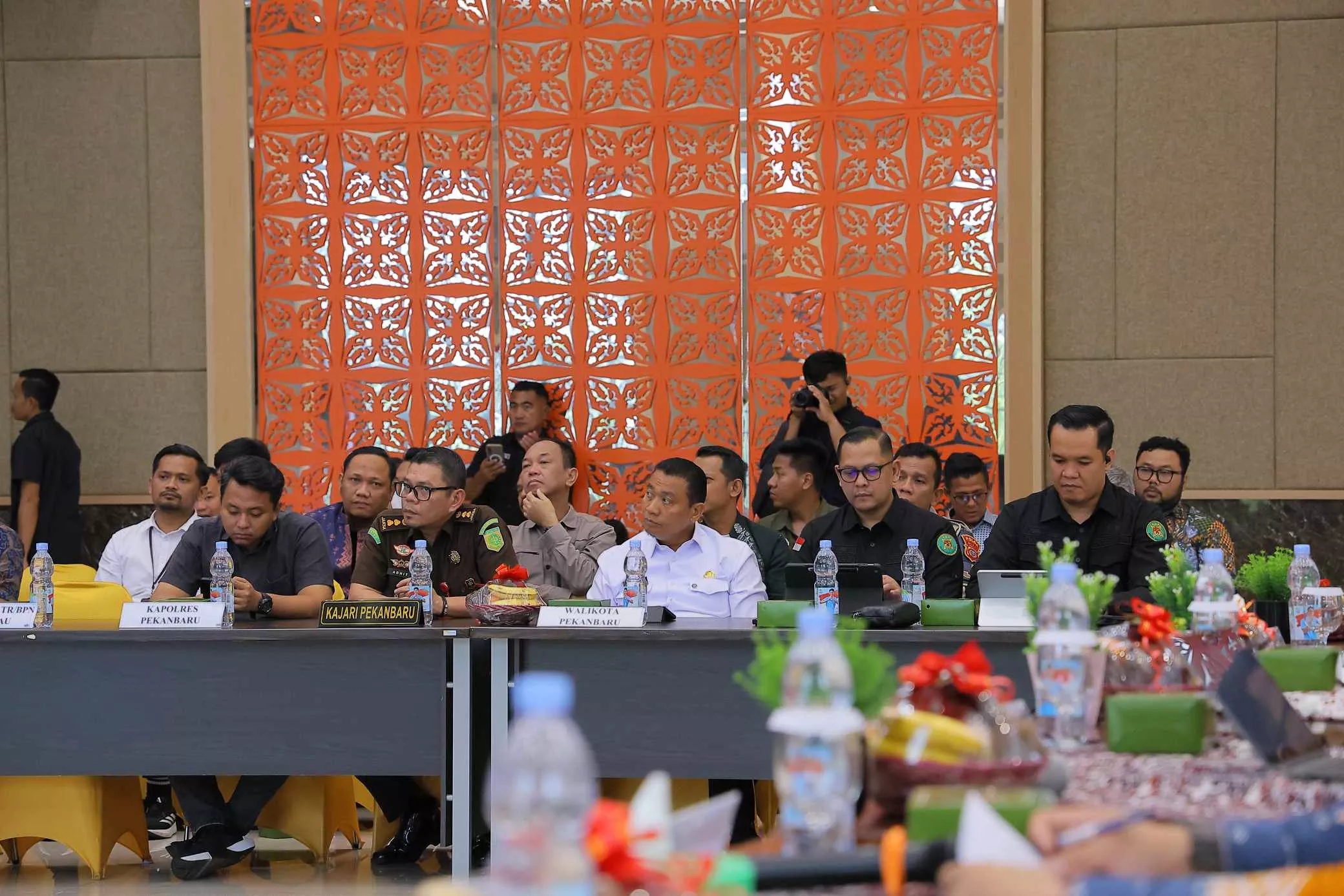 Suasana rapat koordinasi penyelesaian pembangunan Jalan Tol Pekanbaru–Rengat yang melibatkan pemerintah daerah dan unsur penegak hukum, Kamis (29/1/26). G45/Afdal).
