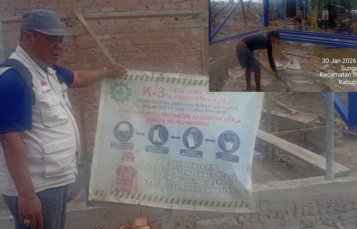 Sabak Auh | Garda45.com – pembangunan Proyek jaringan Irigasi Air tanah di kampung Sungai Tengah Kecamatan Sabak Auh Kabupaten Siak Provinsi Riau Menuai Sorotan tajam dari LSM Fokorindo Siak Bersama Tim Media saat Investigasi kelapangan Jum’at 30 Januari 2026.