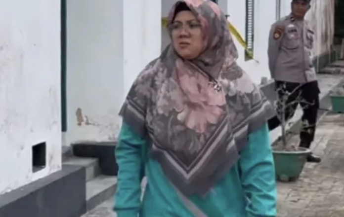 Bupati Siak Afni Zulkifli saat meninjau lokasi runtuhnya objek wisata bersejarah Tangsi Belanda, Sabtu (31/1/26). (G45/Ivan).