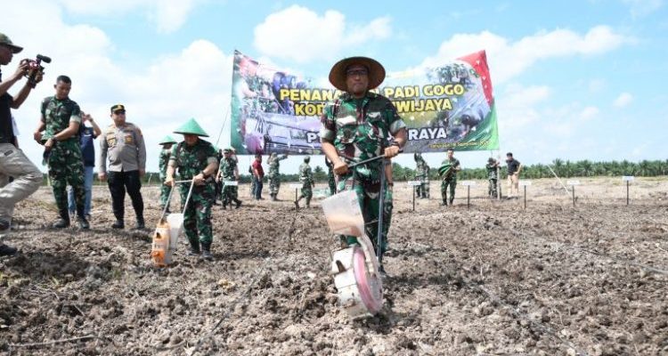 Perkuat Ketahanan Pangan RI, Pemkab Banyuasin dan Kodam II/ Sriwijaya Tanam Padi Gogo